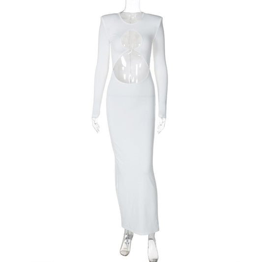 Style: SexyFit: SlimFabric: PolyesterPattern: SolidElement: Cutout,BacklessNeckline: Crew NeckSleeve Type: OthersSleeve Length: Long SleeveProduct Type: Cutout Dress,Bodycon Dress,Maxi DressOccasion: Party & ClubDress/Skirt Length: MaxiMain Composition: PolyesterSeason: Spring/Fall- $27.88