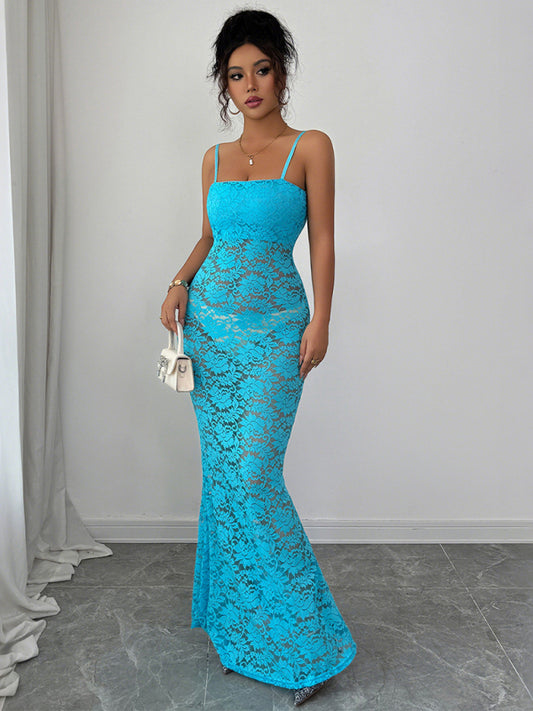 Women's Lace Up Full Floral Sexy Halter Dress Long