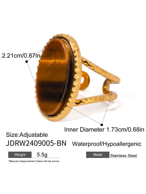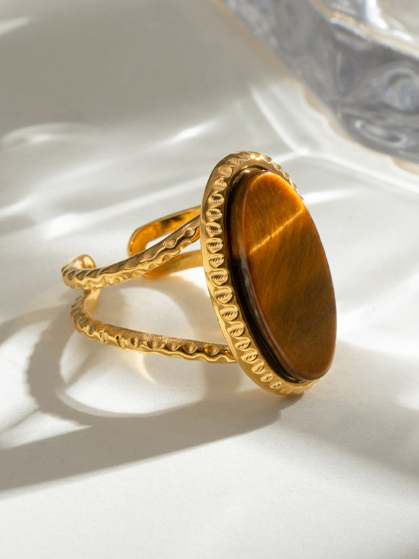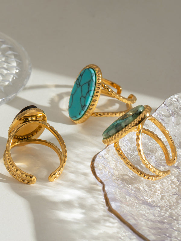 Oval Blue Turquoise Tiger's Eye Adjustable Open Ring (Single Set)