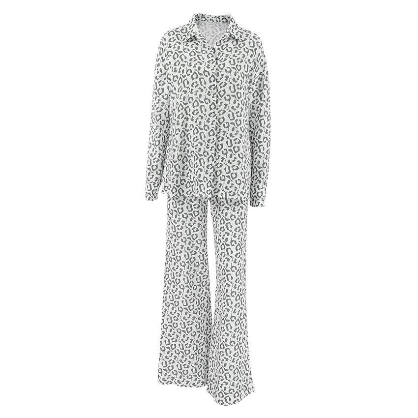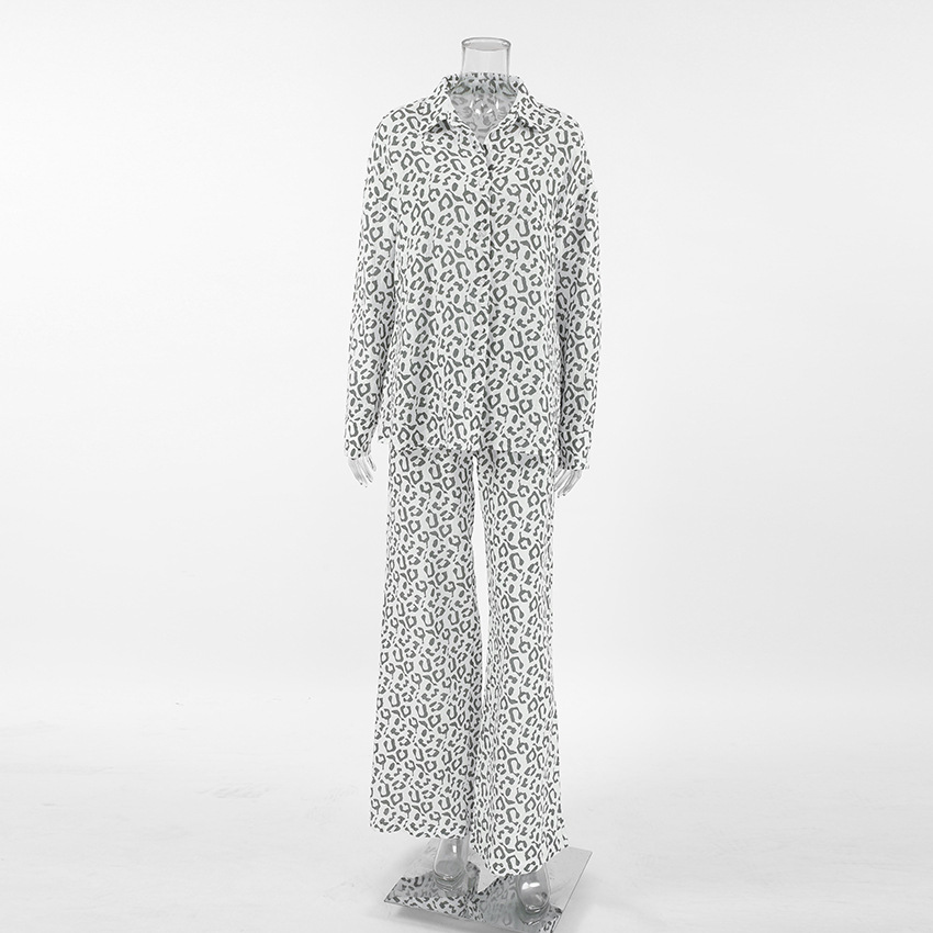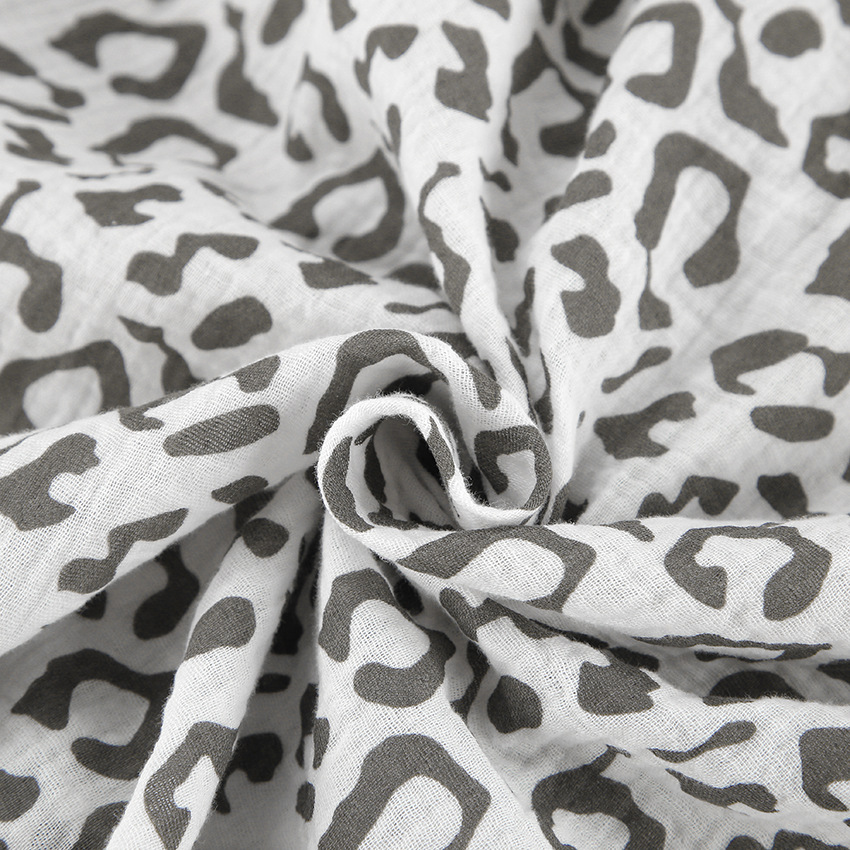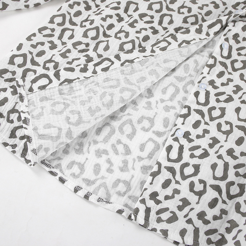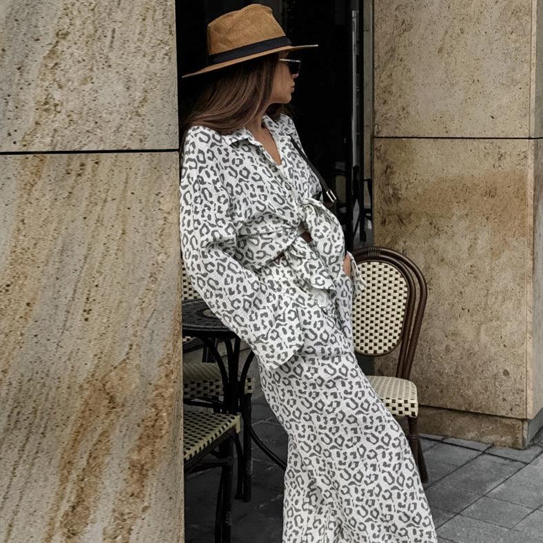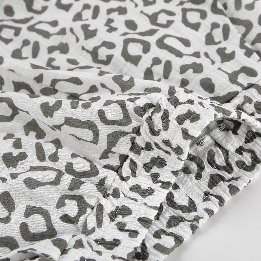 Cotton Linen Crepe Leopard Print High Waist Casual Two Piece Set