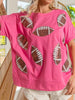 Casual Summer Sequined Rugby Round Neck Pullover T-Shirt Short Sleeve Top