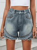Ladies washed casual denim rivet raw edge shorts