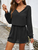 Long-sleeved women's temperament casual solid color puff sleeve dress