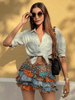 colorful printed pleated sexy hip-hugging short skirt