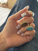 Oval Blue Turquoise Tiger's Eye Adjustable Open Ring (Single Set)