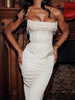 Solid Color Sexy Sleeveless Off-Shoulder Pearl Fishbone Slit Dress Skirt Women's Dress