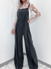 Vintage washed raw edge wide leg jumpsuit loose overalls
