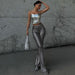 Women High Waist Stretch Silver Plaid Shiny Casual Pants