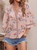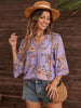 Women's V-neck printed patchwork lace flared sleeve top - 808Lush